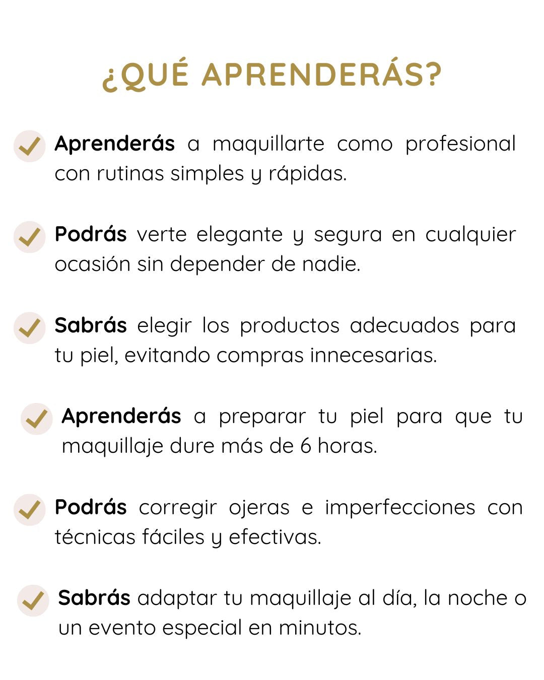 👉 ¡Muchísimo más! 💄 Este curso está hecho para principiantes que quieren aprender desde cero, con pasos claros y fáciles. Si ya tienes experiencia, te dará técnicas profesionales para perfeccionarte.